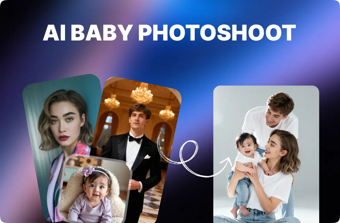AI Baby Shoot creates a complete baby photoshoot from one baby photo and optional parent photos. You receive realistic 4K portraits styled like a professional newborn or toddler session.