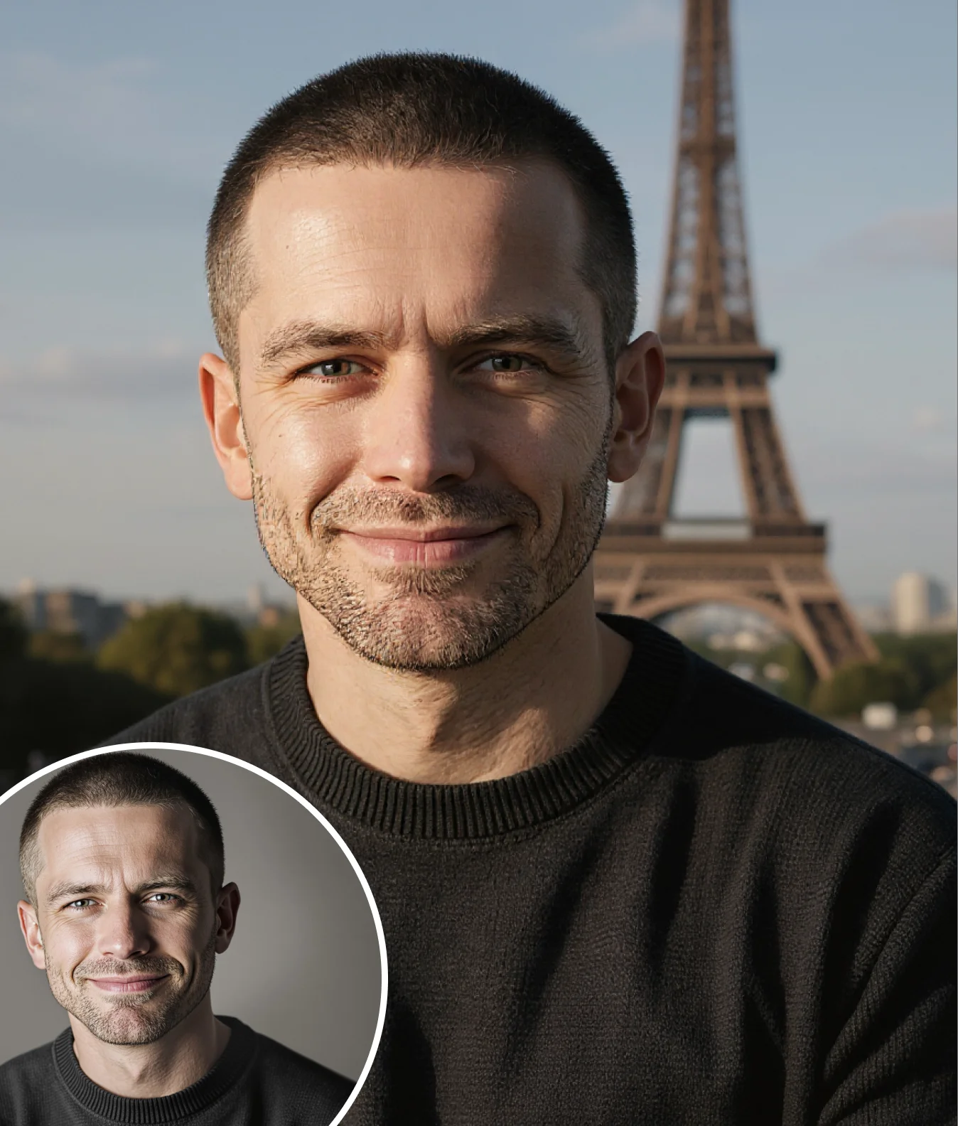 Upload your image, choose a destination, and AI seamlessly blends you into that location.